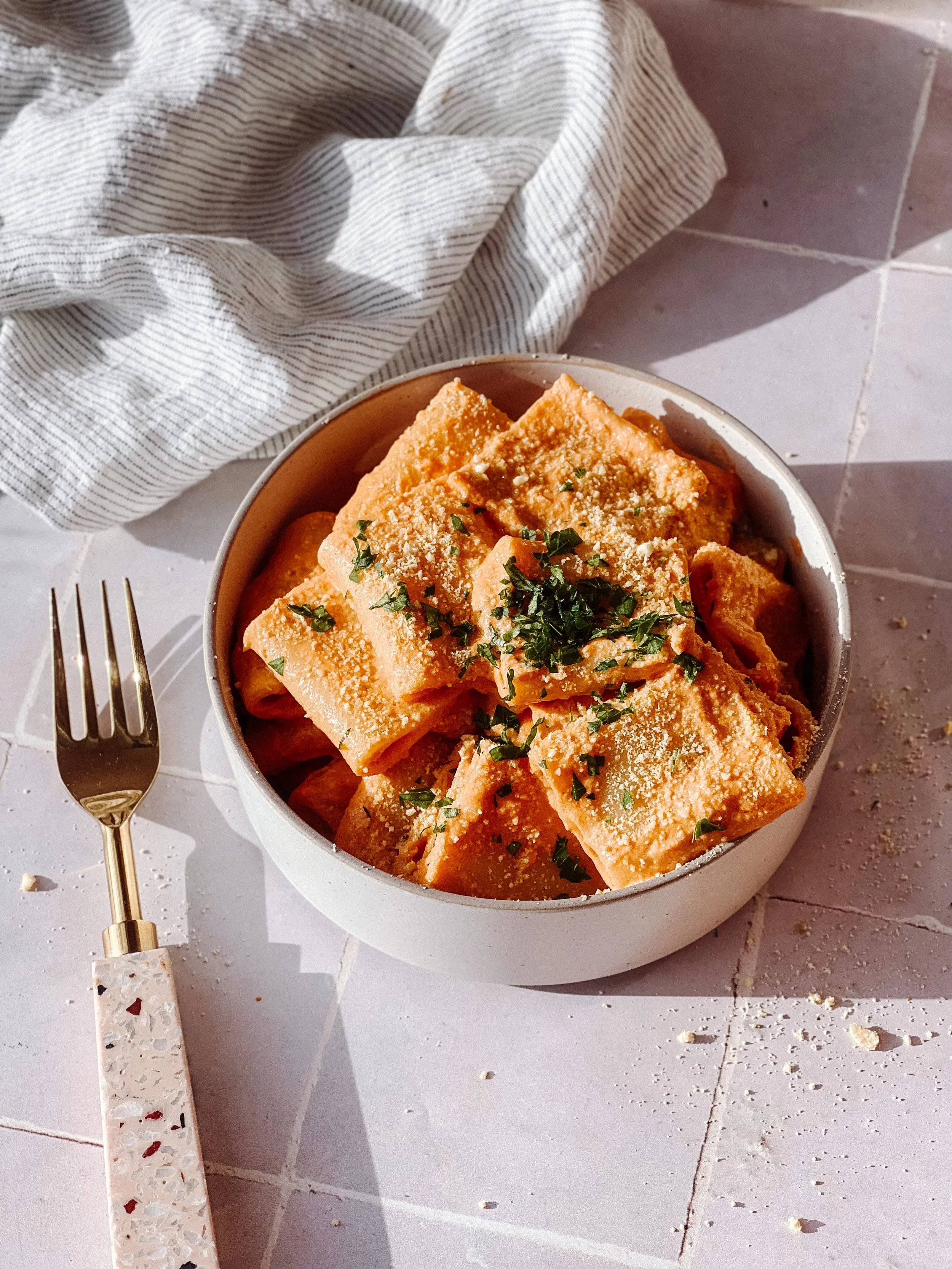 I love making pasta dishes where everything is hidden in the creamy sauce.