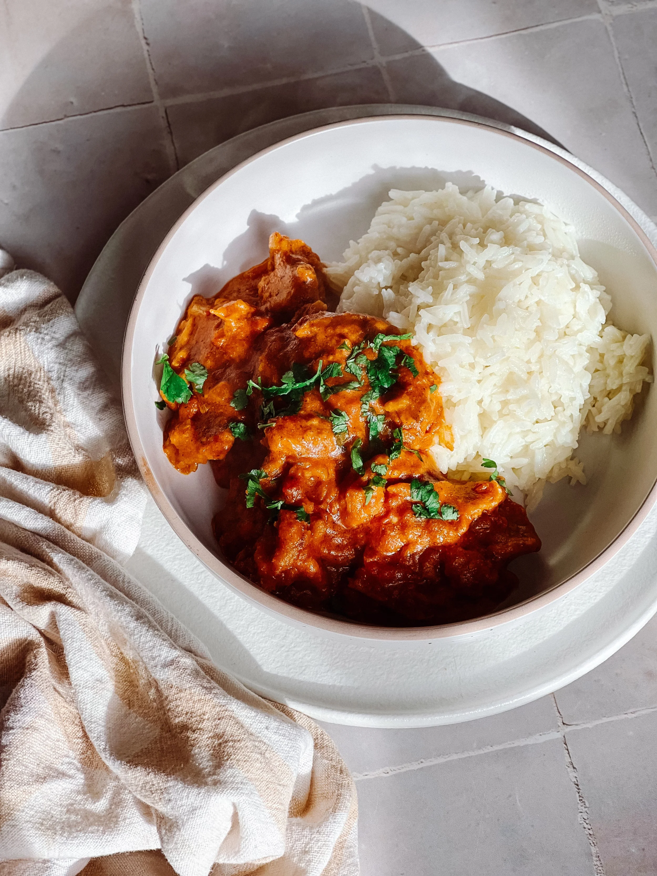The BEST rich & creamy vegan butter ‘chicken’ recipe! This is a go-to meal in our home and a family favourite.